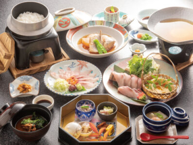 鯛をしゃぶしゃぶして食べる当館オリジナルのシンプル鍋料理。
